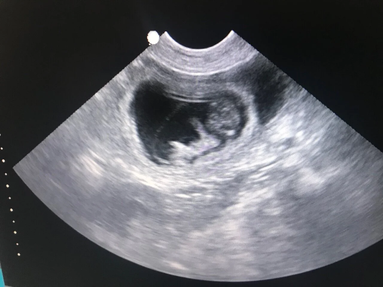 Piper was cradled on the exam table and there, on the screen, was a fuzzy image of a tiny puppy. Paws, tail, and a tiny fluttering heart. It was breathtaking. At this point it’s too early to get much of a count, but we definitely found multiple, squirming pups tucked in there - each one just over an inch long. We are beyond excited!